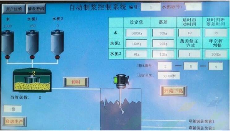 引入圖像識(shí)別、移動(dòng)端APP等技術(shù),實(shí)現(xiàn)雙輪銑施工參數(shù)的數(shù)字化精細(xì)監(jiān)測。同時(shí),采用大量先進(jìn)的自動(dòng)化硬件設(shè)備,實(shí)現(xiàn)雙輪銑制漿、注漿系統(tǒng)自動(dòng)化操控,將制漿、注漿系統(tǒng)與雙輪銑鉆進(jìn)機(jī)械設(shè)備形成聯(lián)動(dòng),減少人力節(jié)約成本,降低水泥用量,提高防滲墻質(zhì)量。